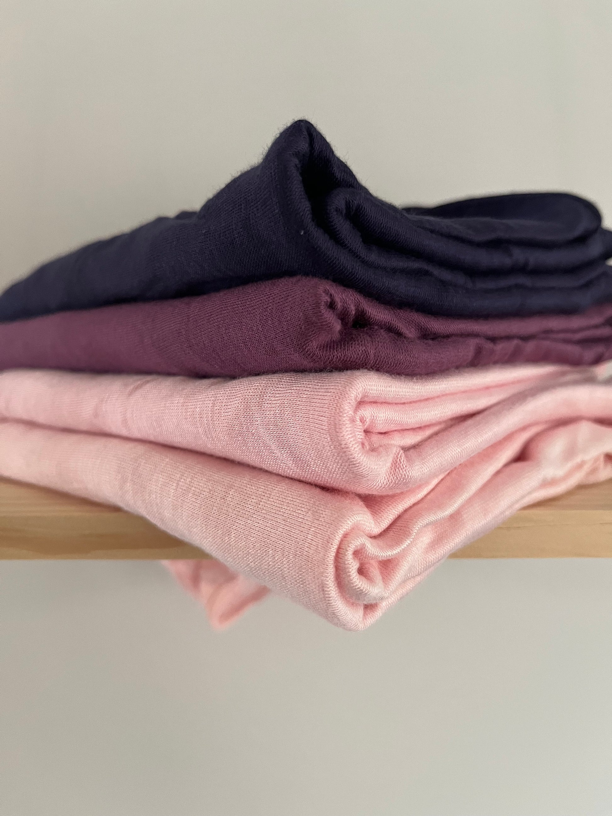 From top to bottom: Navy, Purple, Bubblegum Pink, Baby Pink